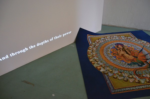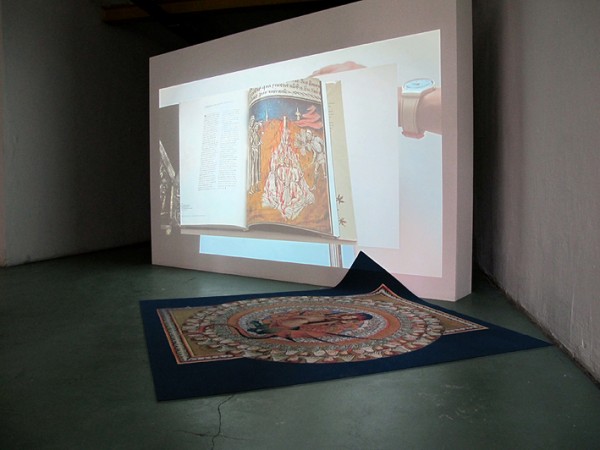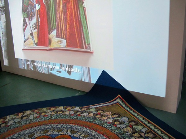 'In Ecstasy', HD video, 6', 2015 & 'Medieval Rihanna', 2mx2m carpet, 2015. Installation view, Does Not EqualW139 Gallery, Amsterdam NL, 2015.