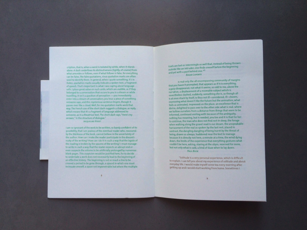 Ed. of 50, Risograph printing, 25 pages, softcover book, hand-cut, hand-stitched, tip-in, Ditto Press London, UK